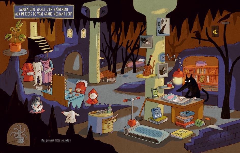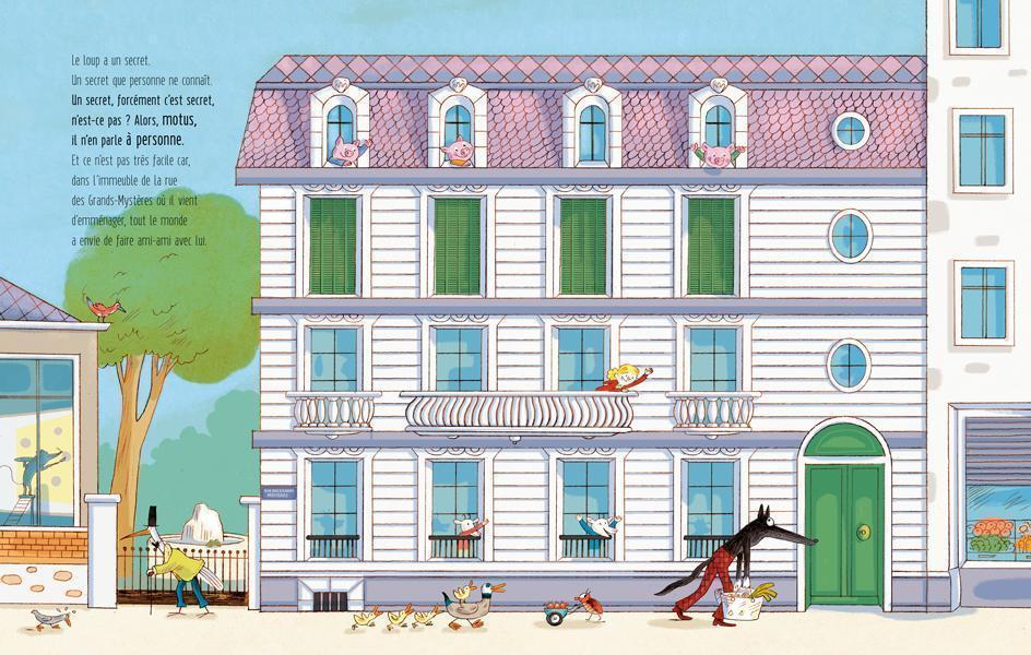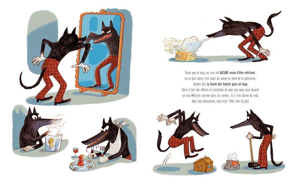 But it’s not easy with all those neighbours trying to befriend him: a little girl in a red hood, three piggy brothers, Madame Goat and her kids...