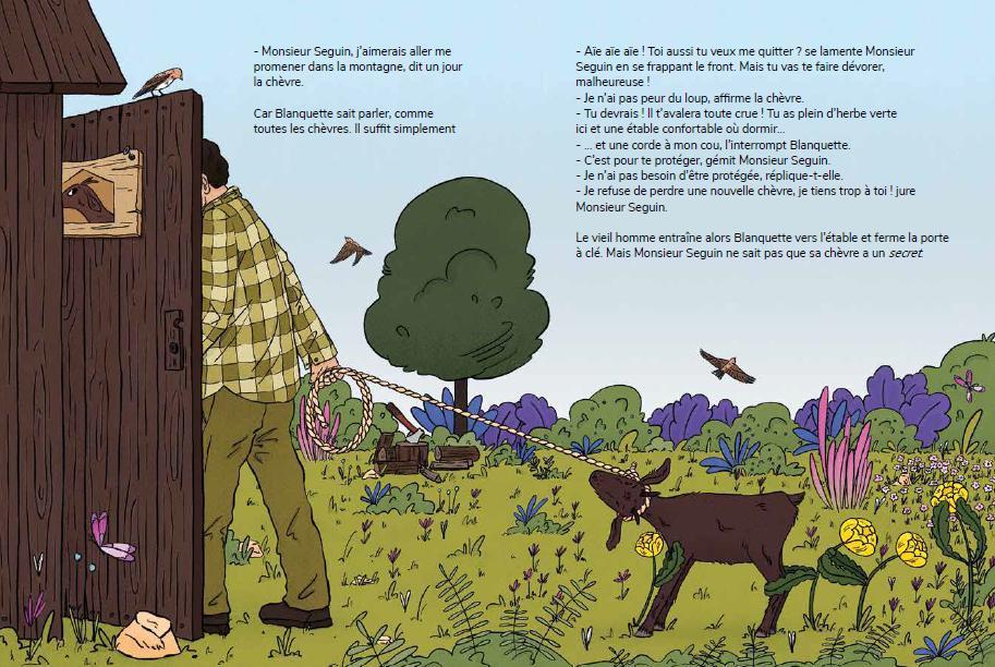 Content : Blanquette the goat dreams of running free in the mountains, but Mr. Seguin keeps her well tied up so she doesn’t get eaten by the wolf. Yet Blanquette isn’t afraid of the wolf, because she has a secret… She belong to the Goat Self-Defence League — and is a black belt in karate!