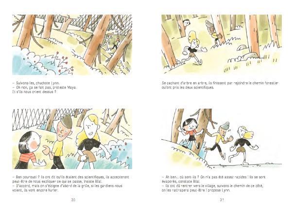 Troubles in Bottles takes place in a village facing heatwaves as early as May. At first, there’s no problem — the village has a natural water source. But as the drought worsens, water restrictions are imposed, and sometimes the taps run dry. However, Lynn notices that the nearby factory keeps shipping large quantities of bottled water. Together with her friends Bilal and Maya, she decides to investigate. Brave Lynn leads them into the forest, where they discover the factory is still drawing water to fill bottles for sale, despite the restrictions. Maya, a little more cautious but very observant, spots important clues, while pragmatic Bilal thinks about asking for help. The three of them alert their teacher, two hydrologists, and even the mayor, to stop these illegal practices. More than just an investigation, their adventure shows their courage and strong sense of justice.