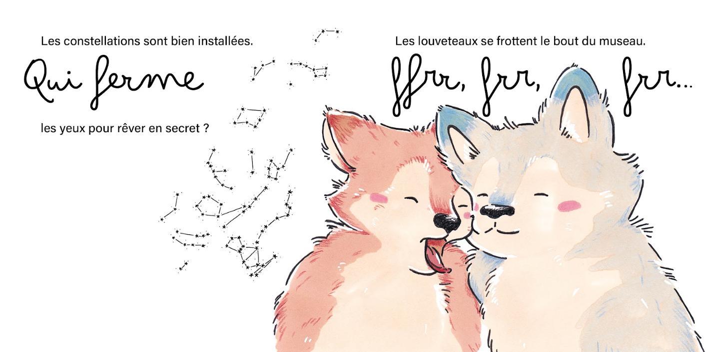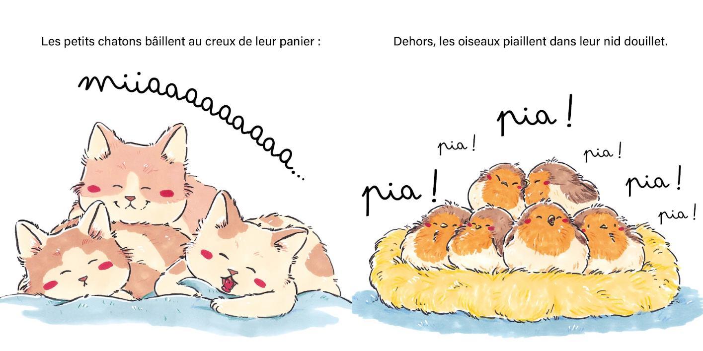 The baby animals stretch and yawn before falling asleep… inviting both child and parent to do the same.