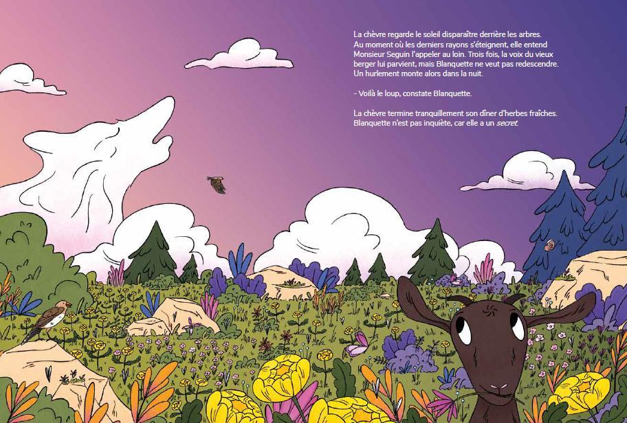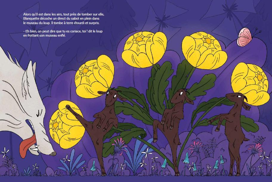 Content : Blanquette the goat dreams of running free in the mountains, but Mr. Seguin keeps her well tied up so she doesn’t get eaten by the wolf. Yet Blanquette isn’t afraid of the wolf, because she has a secret… She belong to the Goat Self-Defence League — and is a black belt in karate!