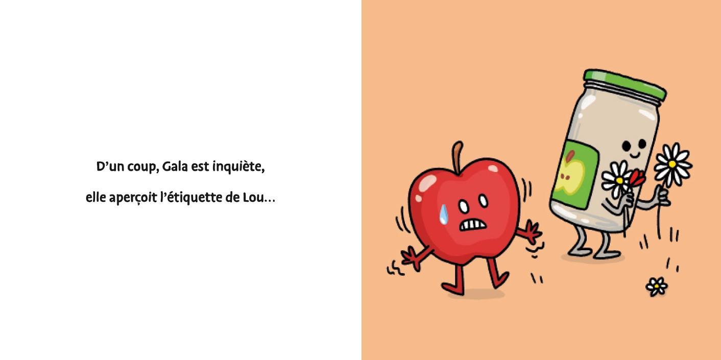 Content : Gala the little red apple is off to visit Granny. On the way, she meets a glass jar. His name is Lou.